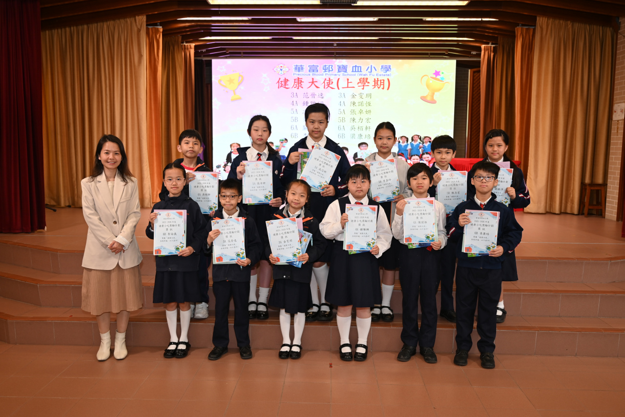 | 2026-03-06 | 華富邨寶血小學 | 健康大使(上學期) | 3A 范晉逸 3A 金雯玥 4A 鍾雅珊 4A 陳諾恆 5A 冼芯妍 5A 張卓妍 5B 李嘉玲 5B 陳力宏 6A 關穎沛 6A 吳栢軒 6B 李詠儀 6B 梁康培 | |