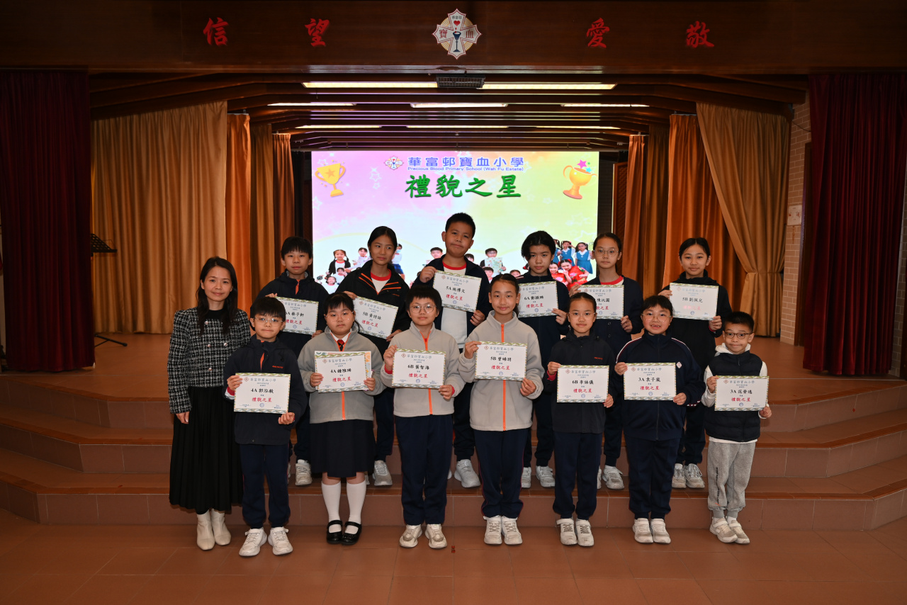 | 2026-02-13 | 華富邨寶血小學 | 禮貌之星 | 3A 范晉逸、袁子嵐 4A 鍾雅珊、郭泓毅 5A 陳沅圓、施博文 5B 黃詩詠、曾晞玥 6A 鄭穎珊、蔡子軒 6B 李詠儀、葉智海 | |