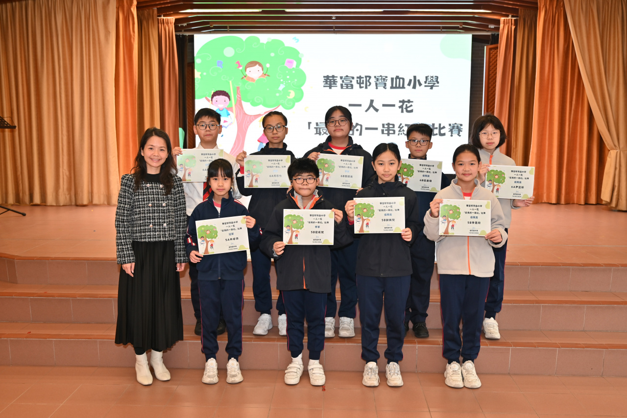 | 2026-02-13 | 華富邨寶血小學 | 一人一花 「最美的一串紅」比賽 | 冠軍 5A林卓詩 亞軍 6A何思怡 季軍 6B譚順美、5B梁成就 優異獎 5B劉佩兒、5B李嘉玲、6A尹芷昕、6A莊浚鈱、6B梁康培